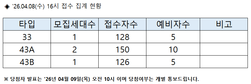 [용산원효루미니] 2026.04.08(수) 추가모집공고 계약신청 접수 현황