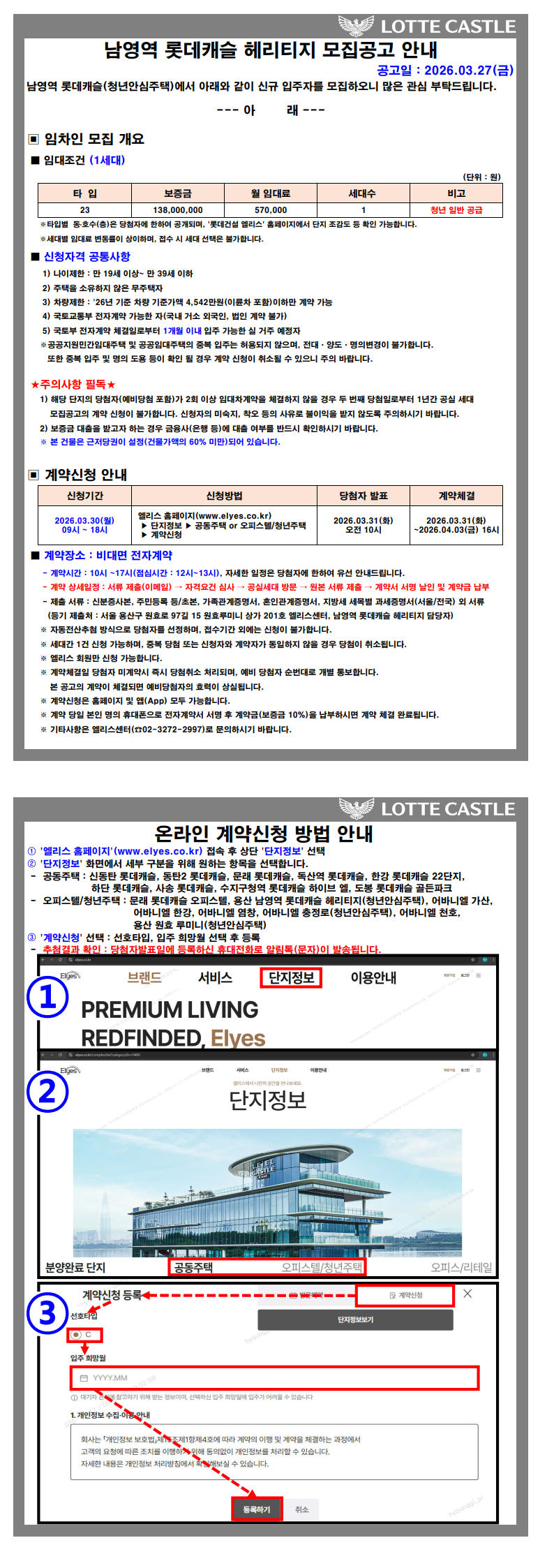 [남영역 롯데캐슬] 공실세대 모집공고 (공고일:'26.03.27)>>마감되었습니다.