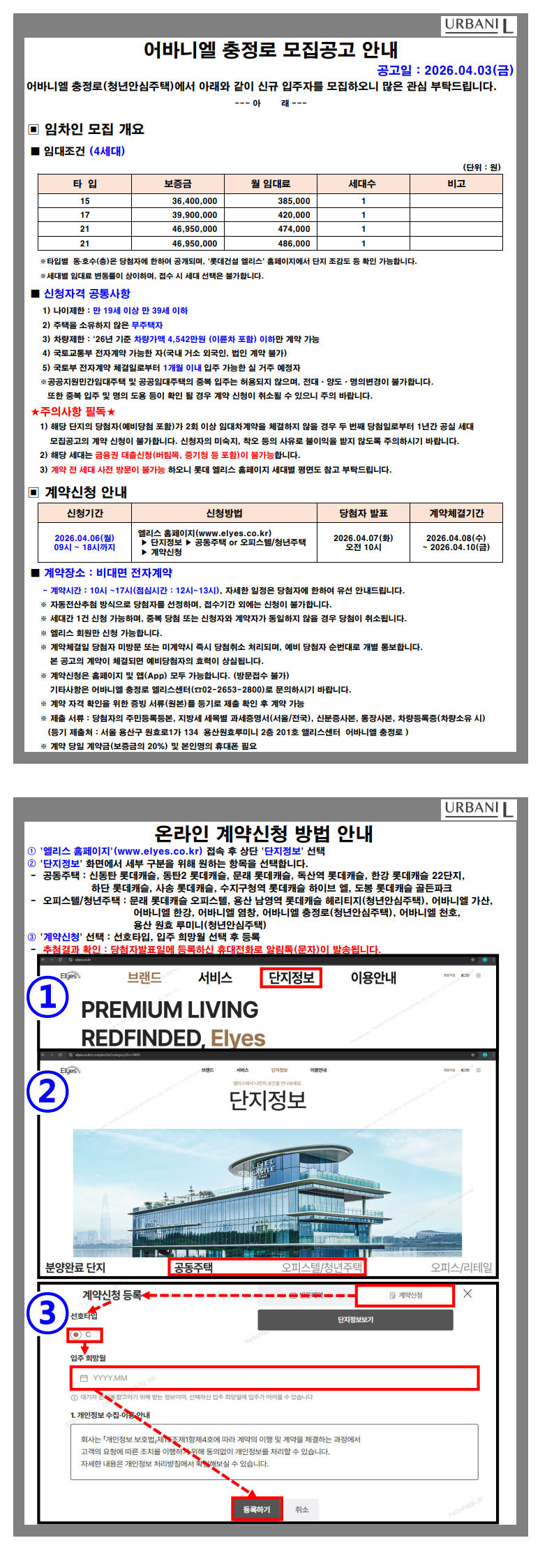 [어바니엘 충정로] 공실세대 모집공고 (공고일:'26.04.03)