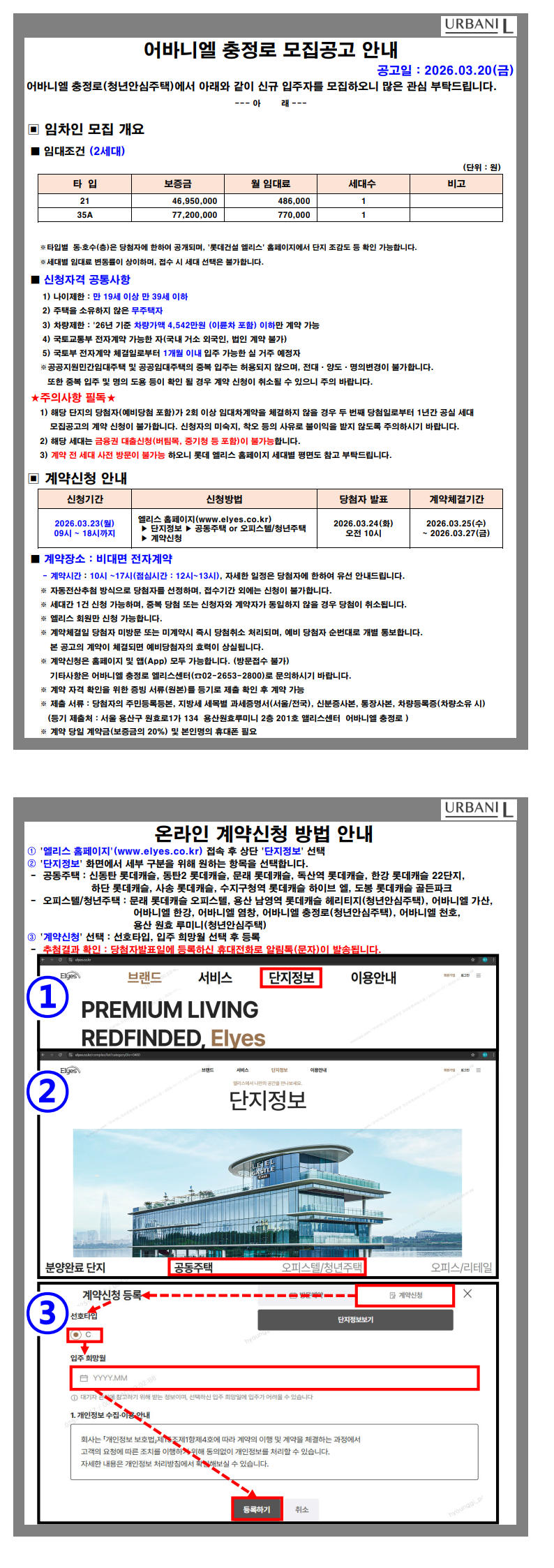 [어바니엘 충정로] 공실세대 모집공고 (공고일:'26.03.20) → 세대 타입 정정