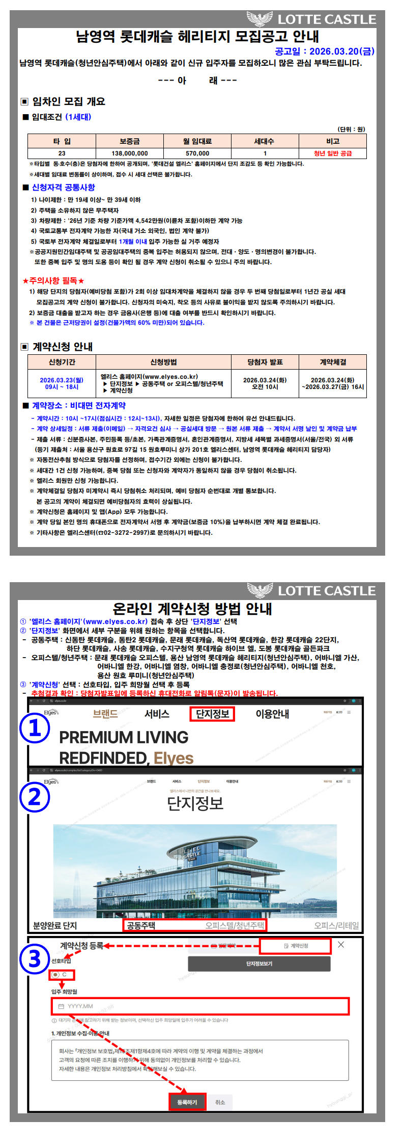 [남영역 롯데캐슬] 공실세대 모집공고 (공고일:'26.03.20)>>마감되었습니다.